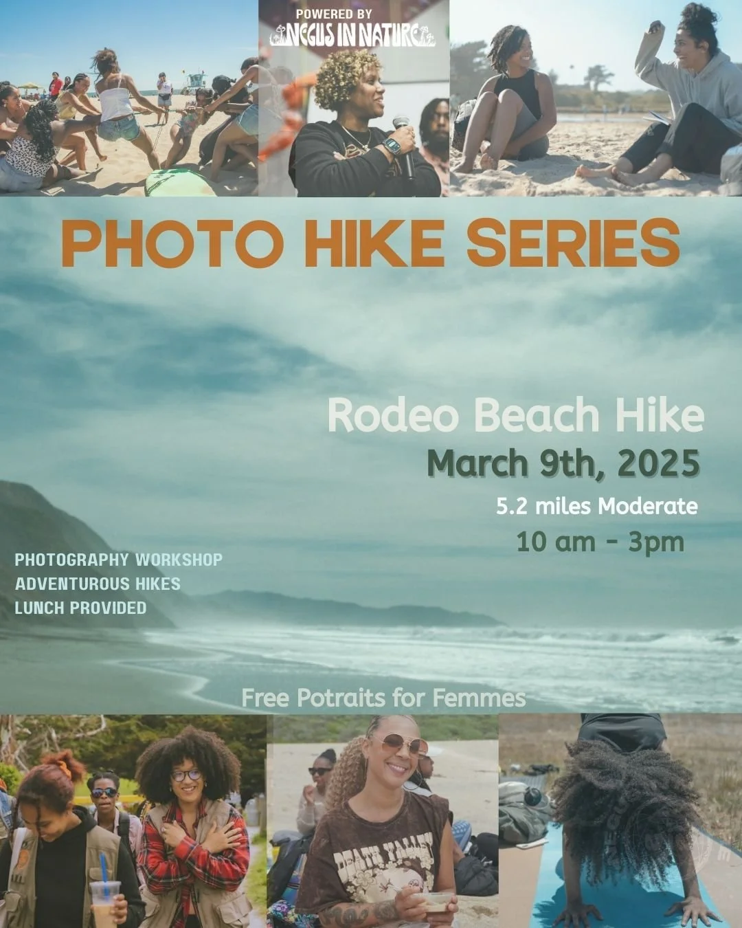We'll meet at 8:30 AM at 1308 Broadway for carpooling, then head to the trailhead for a 10:00 AM start. Enjoy a provided lunch, learn valuable photography techniques, and capture the beauty of the coastal landscape.